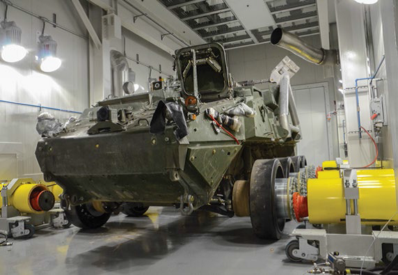 One of the TARDEC labs that will be toured is the Power and Energy Vehicle Environmental Laboratory (PEVEL). Equipped with multiple dynamometers, the PEVEL provides the tools required for full vehicle powertrain testing, evaluation and assessment on wheeled and tracked vehicles through external load control and data collection.